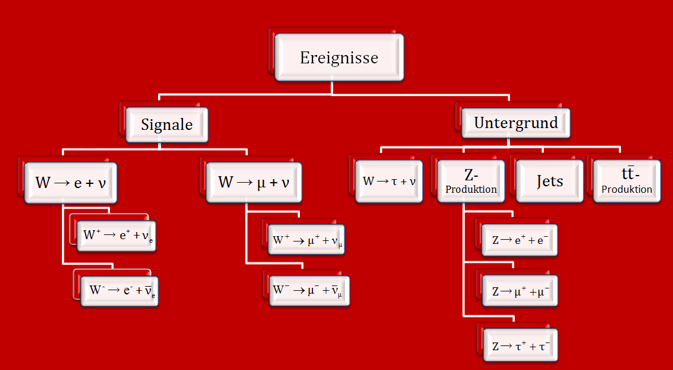 Nur wenn alle diese Auswahlregeln für ein Ereignis zutreffen handelt es sich um ein Ereignis, in dem ein W-Teilchen erzeugt wurde.