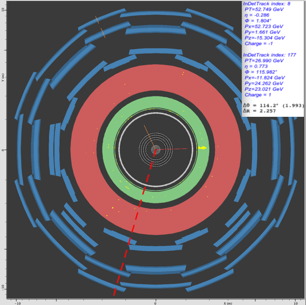 To increase the signal to background ratio in the chosen decay mode we will concentrate on the angle between our two detectable leptons in the plane perpendicular to the beam pipe.