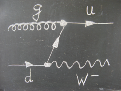 If protons collide not only can W particles be created but, for example, Z0 particles as well.