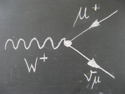 In our events, we will only look at decays of W particles into electrons (or positrons) or muons (or anti-muons). Thus we get the following Feynman diagrams: