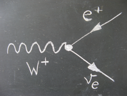 In one third of the W-decays, a lepton and a neutrino are produced.