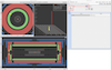 The same event in the end view. The track through all three inner detectors and the little yellow boxes depicting the deposits in the electromagnetic calorimeter can be easily recognised.
